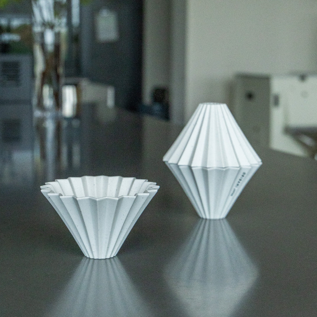 ReWork Dripper S (リワーク ドリッパー S) プロ仕様の機能設計 ORIGAMIドリッパーの特徴である20本の溝が、お湯の流れを安定させ、初心者でもバリスタのような抽出を可能にします。 円すい型とウェーブ型、2種類のペーパーフィルター対応。フィルターを変えるだけで、同じコーヒー豆から全く違う味わいを楽しめます。 環境にやさしい選択 「ReWork」プロジェクト第一弾。製造時にリサイクル磁器を20%使用し、環境に配慮しながら機能性を実現しました。 粉砕したリサイクル磁器を練り込むことで生まれる、一つひとつ異なる表情。釉薬を使わないマットな質感が、キッチンに洗練された佇まいをもたらします。 互換性 ※従来品より数ミリ大きくなりますが、ペーパーフィルターやホルダーは共通でご使用いただけます。 素材 磁器/日本製 ※表面の細かい凹凸や小さな穴は陶磁器の特性です。 お手入れ方法 耐熱温度差120℃、電子レンジ、食洗機使用可 サイズ・重量 Φ115×70H 底穴Φ25 約119g配送についてはこちらから。 納品書がご不要の方は、カート内の備考欄にご記入下さい。International customers can visit our online store in English by clicking the link below.Online Store in EnglishIf you have...