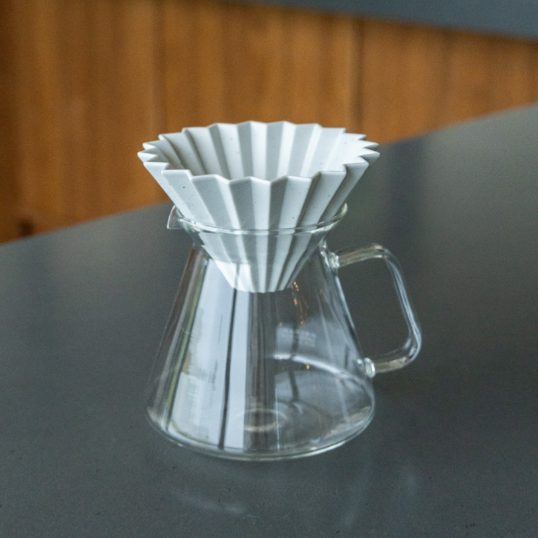 ORIGAMI Paper Filter [Cone] ORIGAMIのドリッパーは、円すい型(コーン)とウェーブ型の2種類のペーパーフィルターを使用できることが特徴です。 使用するペーパーの形状の違いよって、抽出するコーヒーの味にそれぞれ変化をもたらします。ORIGAMIの円すいペーパーフィルターはシワが深く十分な厚さがあることが特徴です。ウェーブ型よりコーヒー粉の層が厚くなる円すい型を使った場合は、粉の上層と下層の抽出状態に差がでます。これにより抽出したコーヒーは複雑な味わいになります。 素材 : バージンパルプ/ 日本製 容量:各サイズともに100枚入り※ReWork Dripper Sには 1-2杯用のサイズがぴったり合います。 配送についてはこちらから。 納品書がご不要の方は、カート内の備考欄にご記入下さい。International customers can visit our online store in English by clicking the link below.Online Store in EnglishIf you have any other questions, please contact us using...